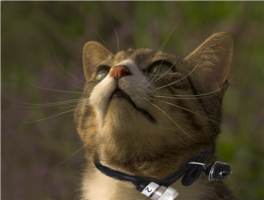 As you can see from this picture of our own gorgeous tabby "Bob" the transmitter is very small and light.